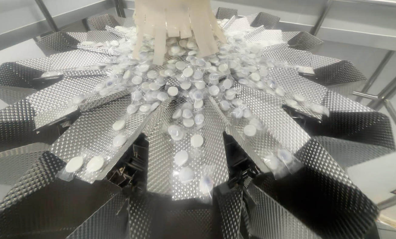 The upgraded bag-in-bag packaging machine is equipped with multiple sets of accompanying independent funnels. Through mechanisms such as multi-station feeding, synchronous vibration, and servo-assisted pressing, it ensures that each snack is smoothly dropped into the bag. This guarantees product stability and increases production capacity without requiring additional floor space.